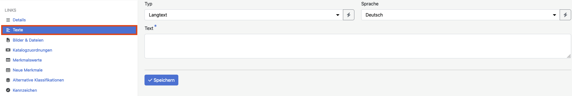 | Text | Pflichtfeld Über dieses Element wird der Inhalt entsprechend des ausgewählten Typs eingetragen. |