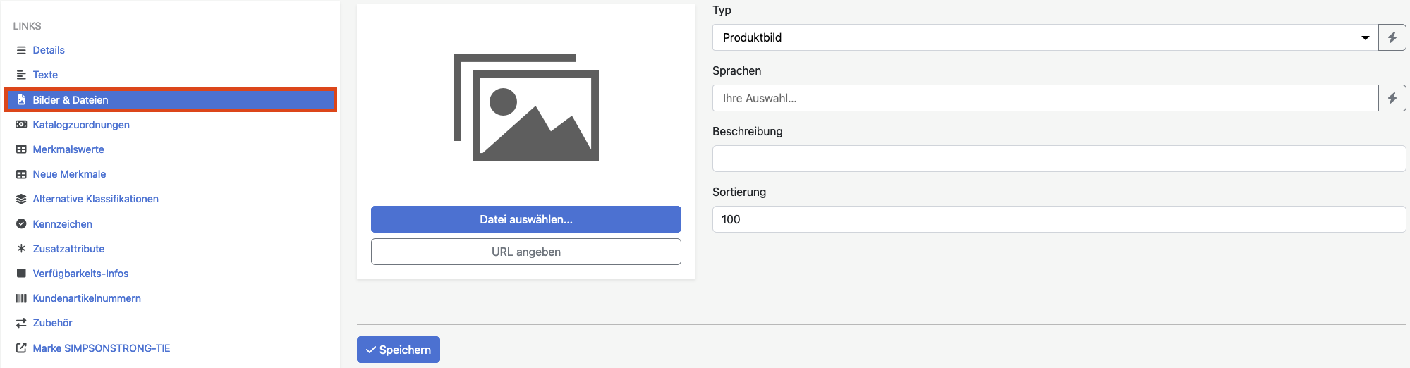 | Datei | Über dieses Element kann das Bild direkt am Artikel hochgeladen werden, die Angabe einer URL ist ebenfalls möglich. |