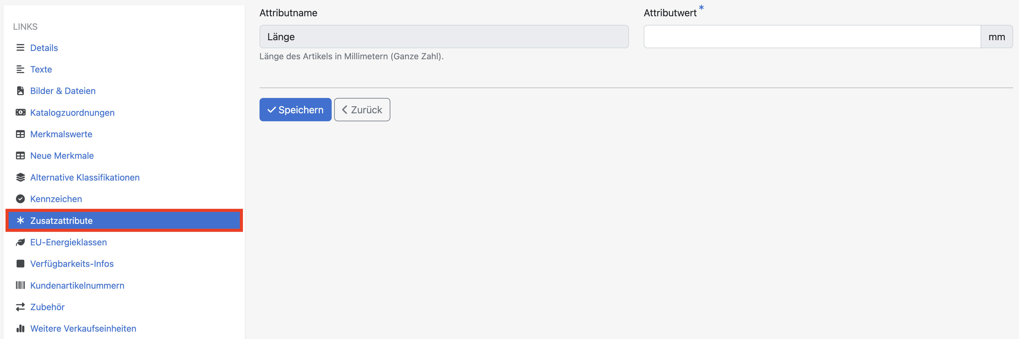 Können analog zu den Zusatzattributen unabhängig von der Produktgruppe oder der Klassifikation gepflegt und